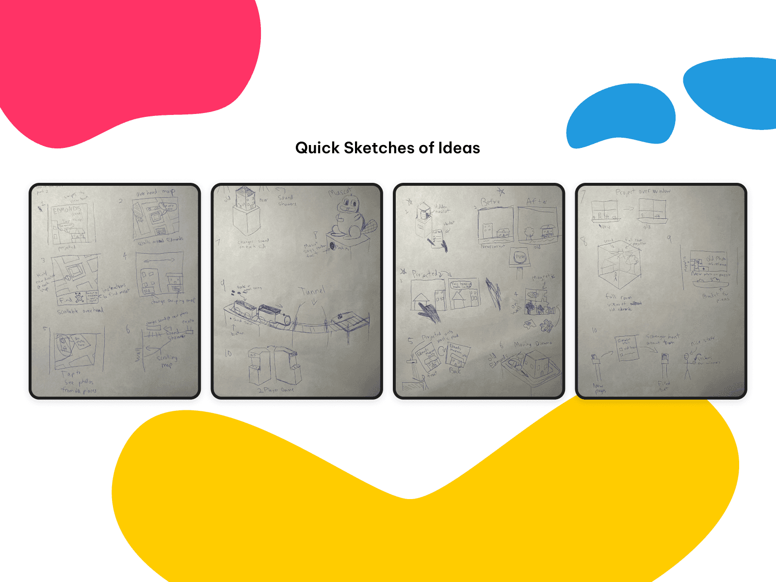 I then sketched early ideas for our design centered on gamification and interactive play. The team then reviewed ideas, and we aligned around the concept of a web-based scavenger hunt game accessible by phone. Visitors would answer exhibit-related questions and had to scan a QR code on the correct exhibit to progress. This concept combined storytelling, interaction, and the already available technology of phones, which was perfect for the museum's goals.