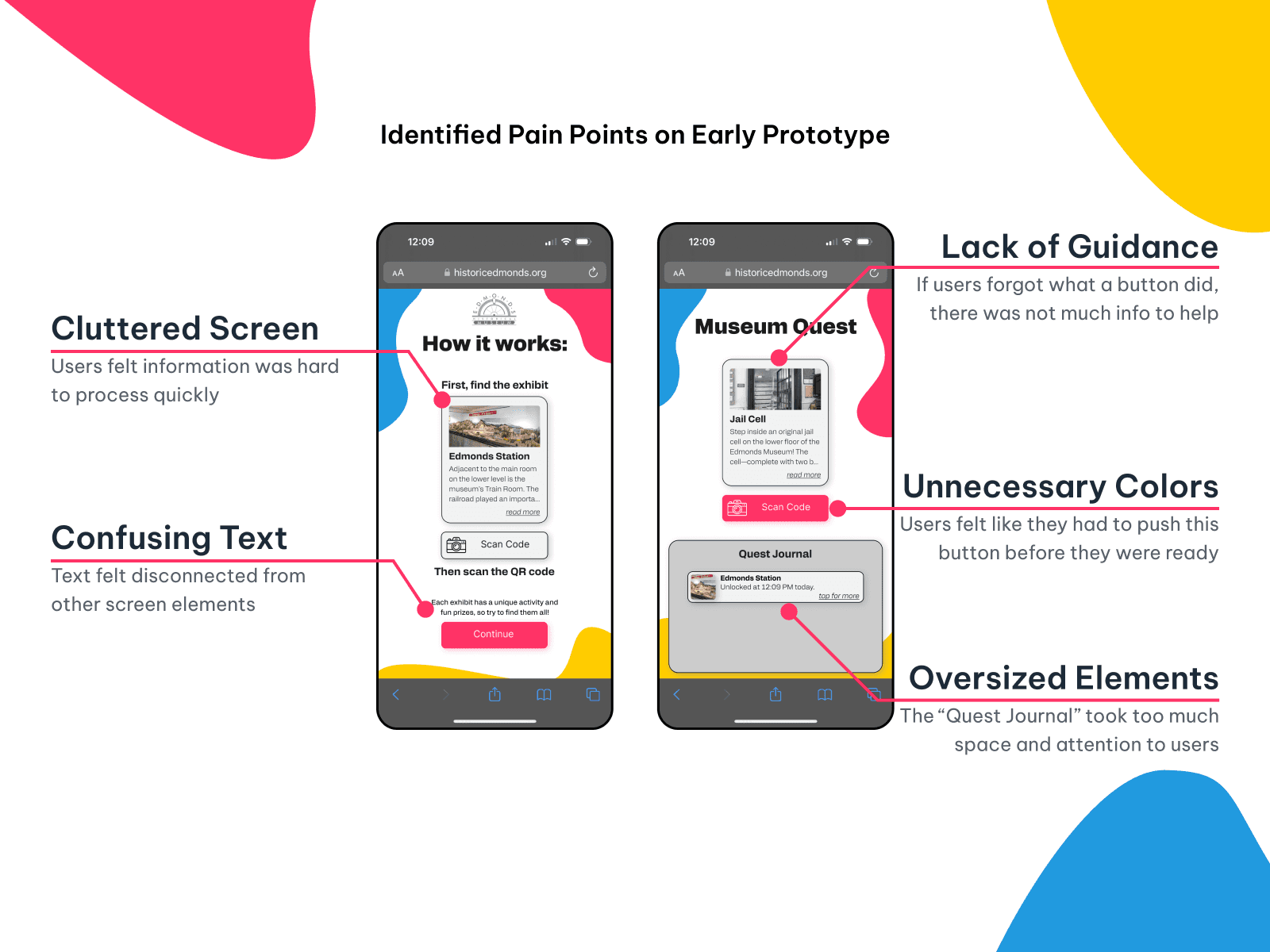 As part of an effort to make the museum more enticing to visitors, the Edmonds Historical Museum partnered with my cohort of designers at UW. The museum was somewhat outdated, and its leadership was exploring potential ways to expand and refresh. One of the museum's vice presidents, Arnie Lund, was in contact with our current professor and served as a guide/point of contact for the project.